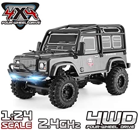 【Realistic Off-road RC Crawlers Looks】With 1:24 scale detailed design, It like a real RC Crawlers provides a super realistic driving experience for kids and adults.The chassis using the C-type steel structure, the front and rear part using the locked spool, the steering arm applying the high-position link design, the front and rear bumper assembling the LED head light, the motor installing in the front part.